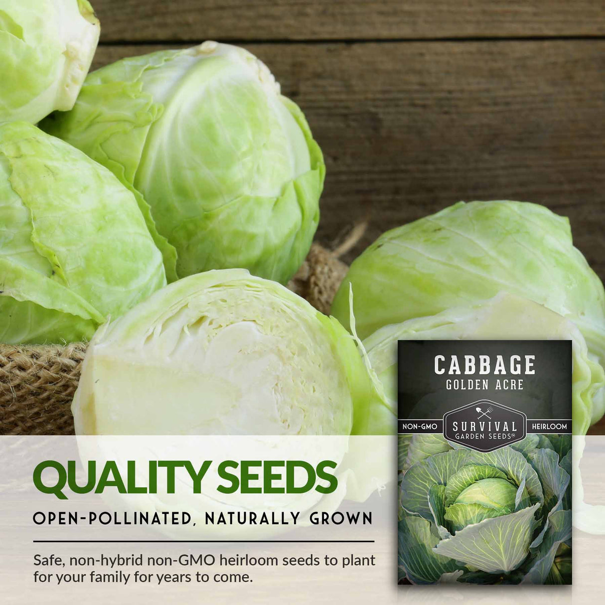 Golden Acre Cabbage Seeds – Heirloom Non-GMO, Early-Maturing Compact Green Cabbage for Spring & Fall Gardens